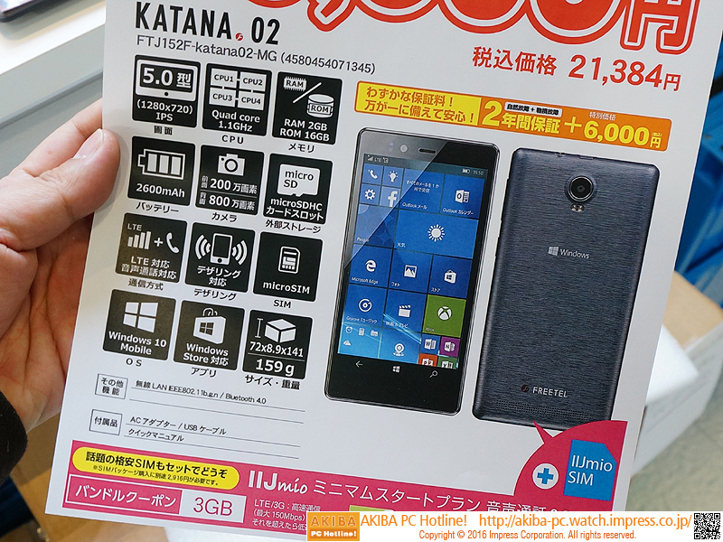 19,800円の5インチWindows 10スマホ「KATANA 02」が発売