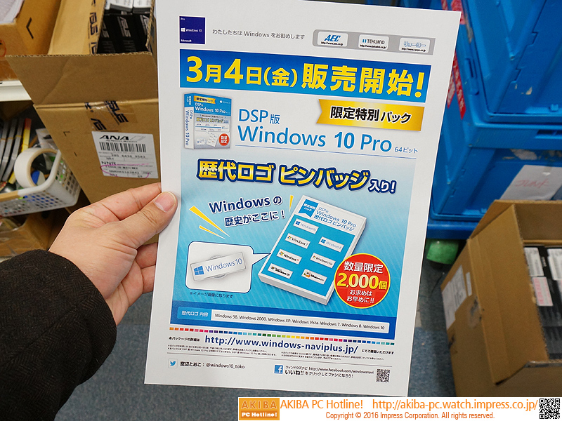 DSP版Windows 10が遂に発売、PCパーツとのバンドル販売のみで単体購入は不可